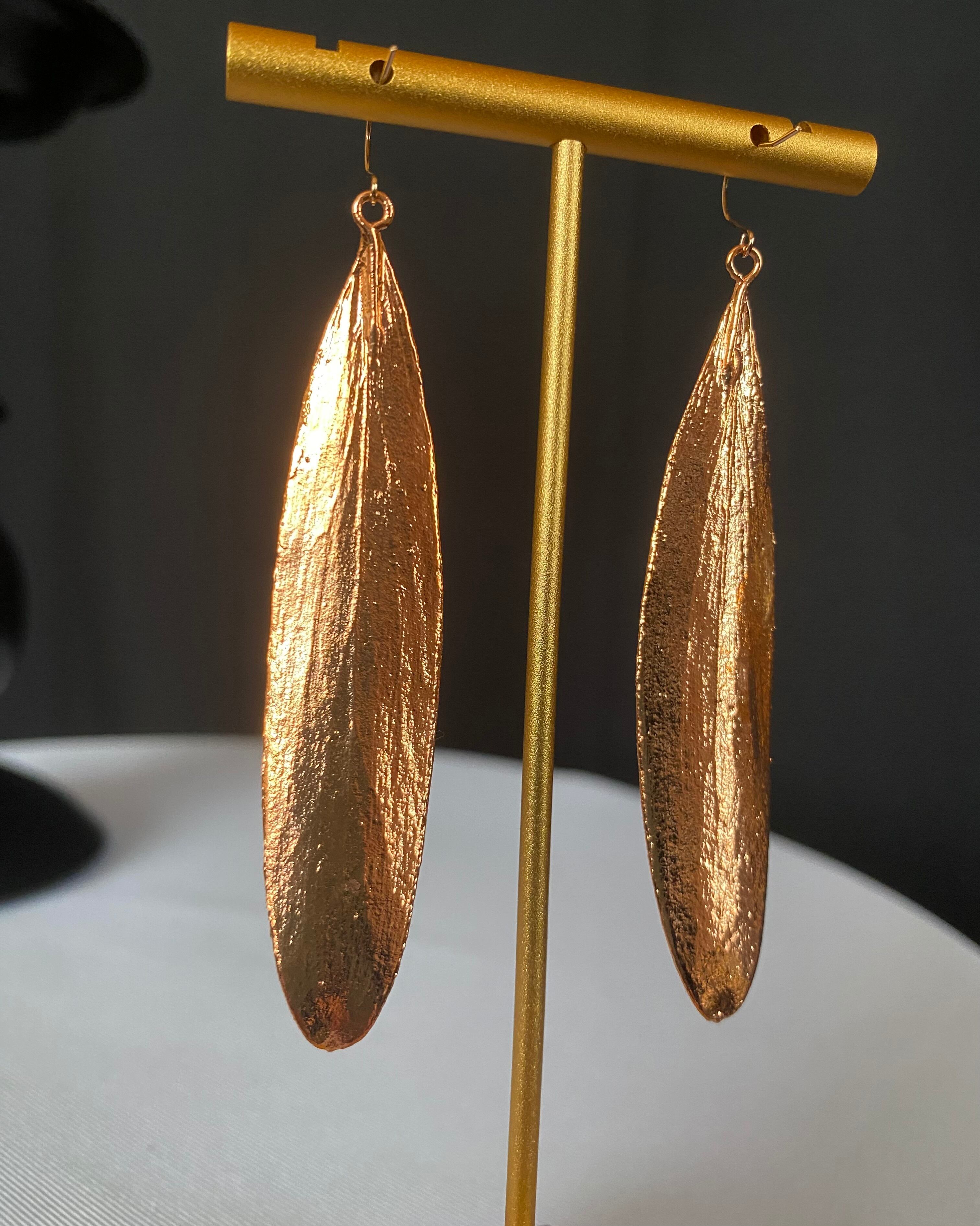 リューカデンドロンの葉に銅のメッキをかけた作品です♪