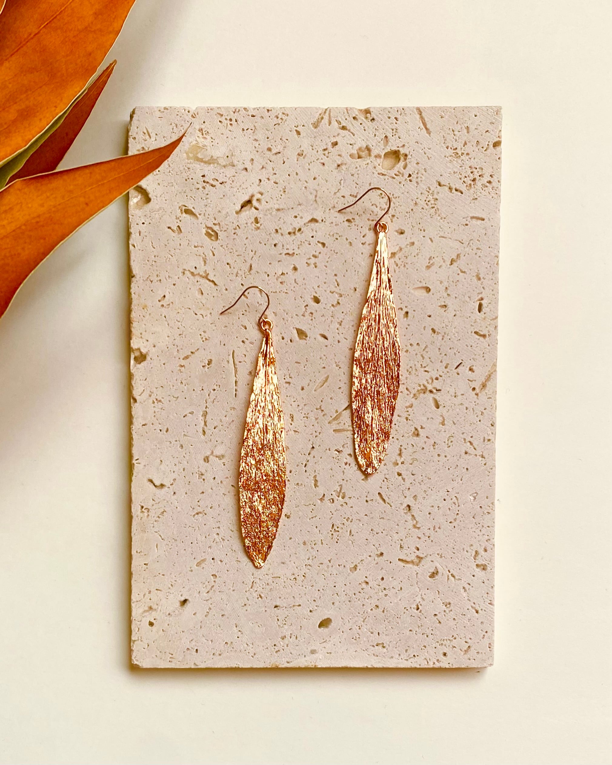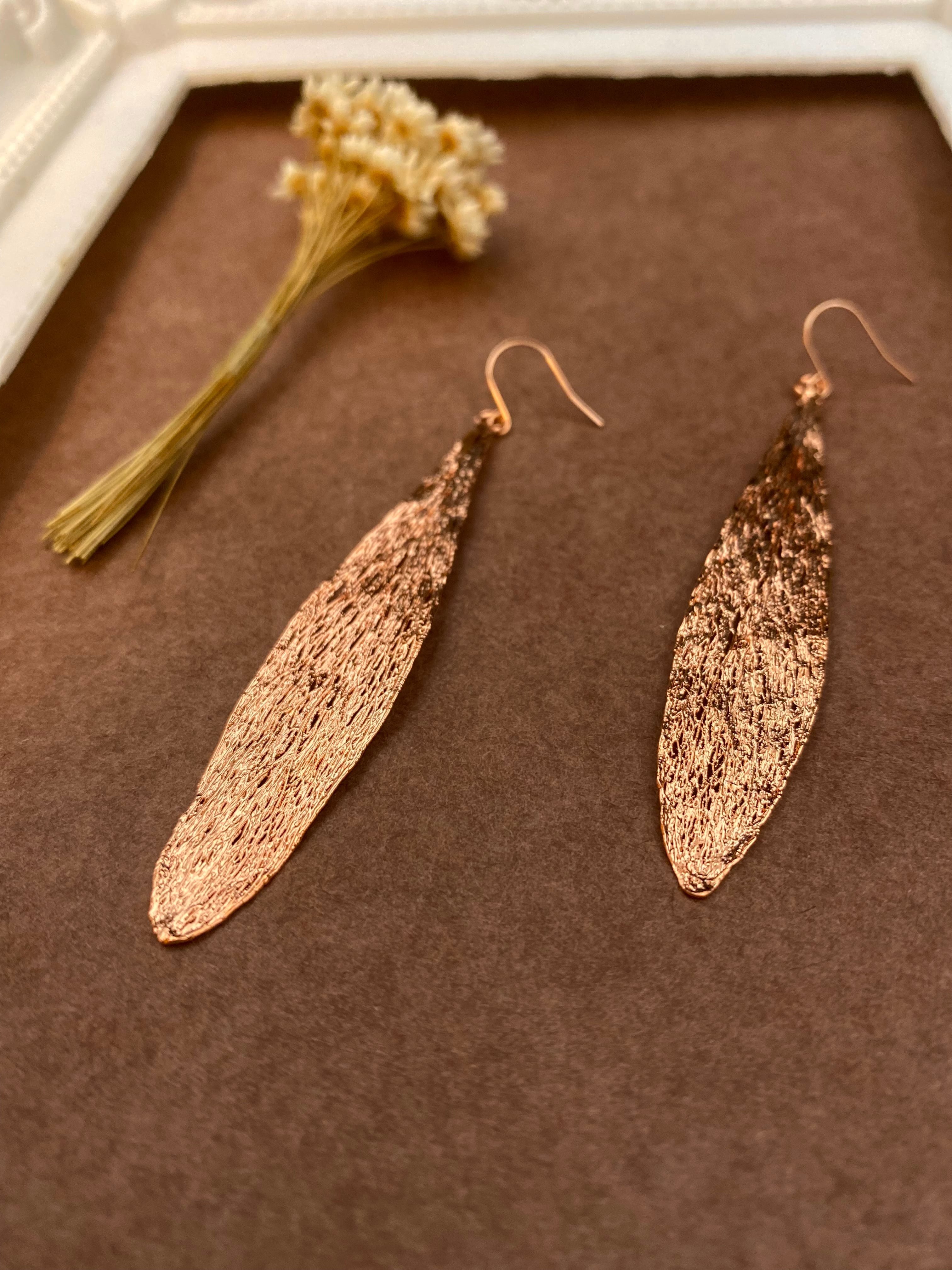 リューカデンドロンの葉を葉脈にしたものに銅のメッキをかけた作品です♪